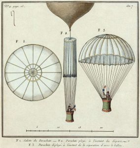 Diversos relatos contam que sua história teve sua origem na China no século XIV. Os chineses usavam um tipo de guarda-chuva para saltar de torres